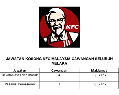 Maklumat Hebahan kepada penduduk Melaka yang sedang mencari kerja. Salah satu syarikat fast food terbesar di dunia iaitu KFC Malaysia t...