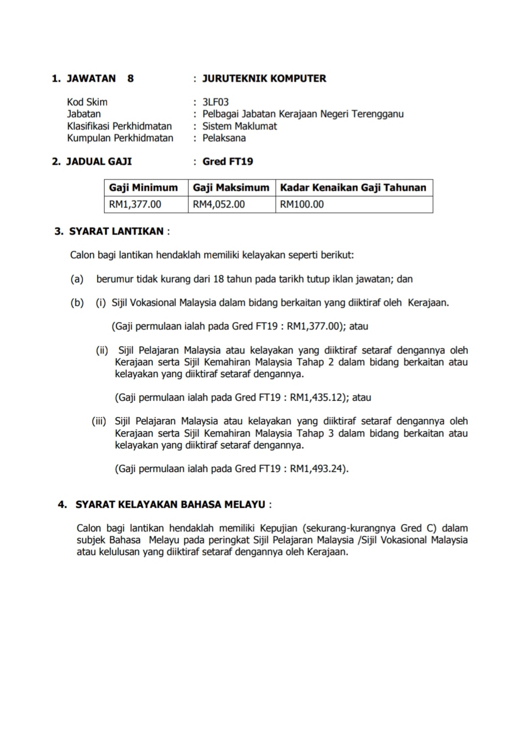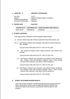 Kepada yang berminat untuk mendapatkan pekerjaan di atas. Kamu perlu membuat permohonan melalui e-permohonan iaitu secara online sahaja kecuali pekerjaan tertentu.