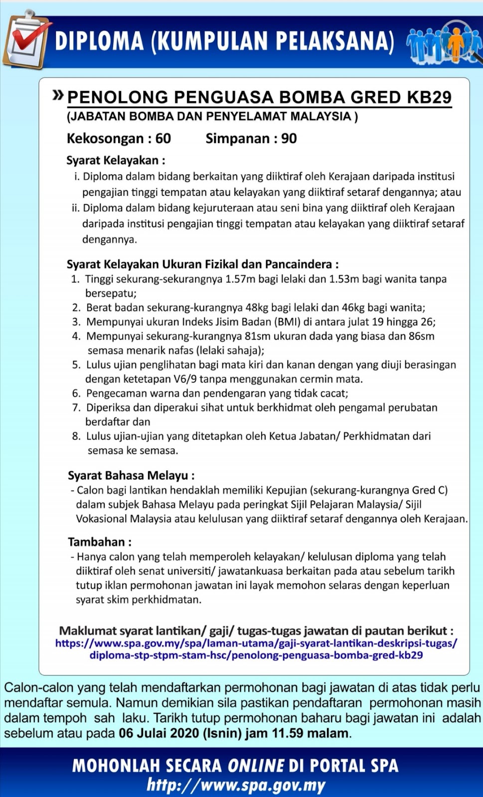 Iklan jawatan kosong telah baru dibuka. Jawatan kosong kali ini terbuka kepada sesiapa yang berminat untuk bekerja dalam skop perkhidmatan. Sila rujuk maklumat di bawah dan skroll sehingga ke bawah untuk mendapat borang permohonan.