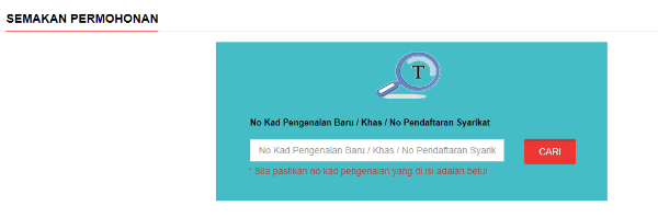 - Anda boleh menyemak jika permohonan anda lulus atau tidak menggunakan No Kad Pengenalan yang digunakan semasa mendaftar.