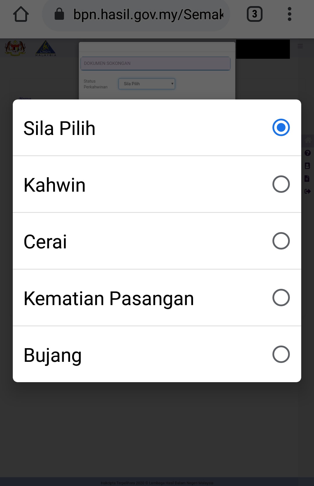 Cara Kemaskini (Status Bujang Kepada Berkahwin / Berkahwin Kepada Bujang)