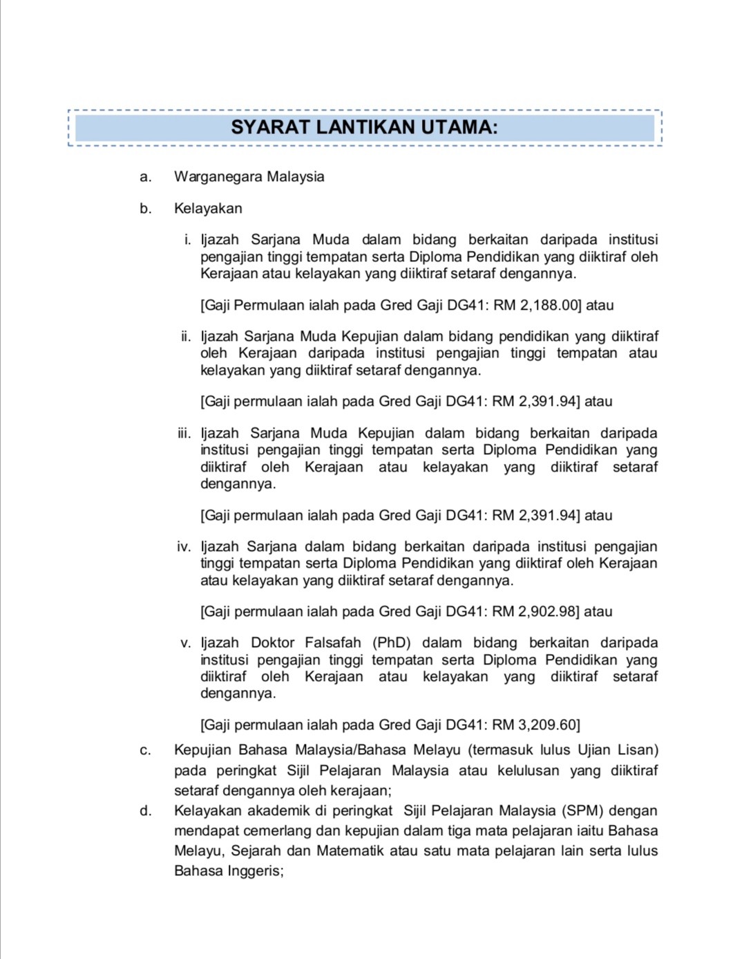 - Pegawai Perkhidmatan Pendidikan (Gred DG41)
