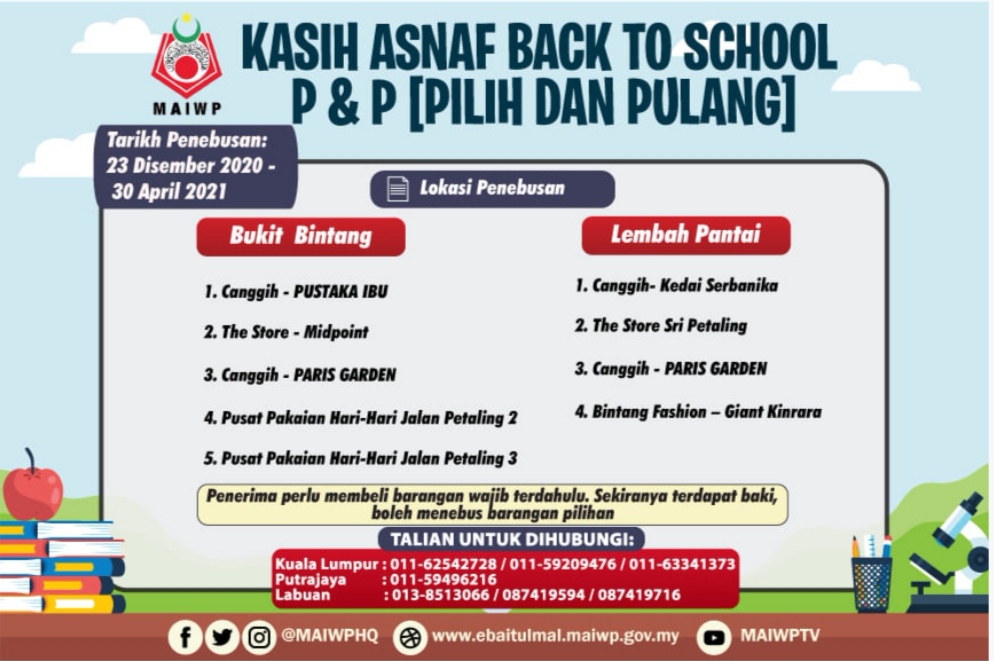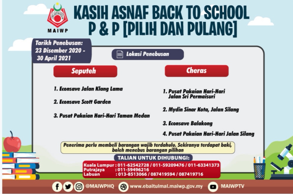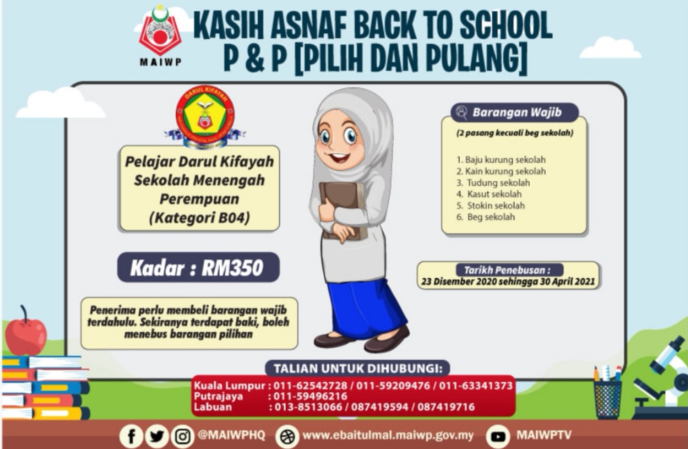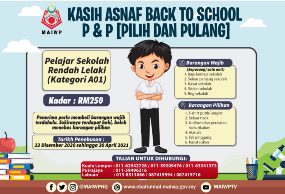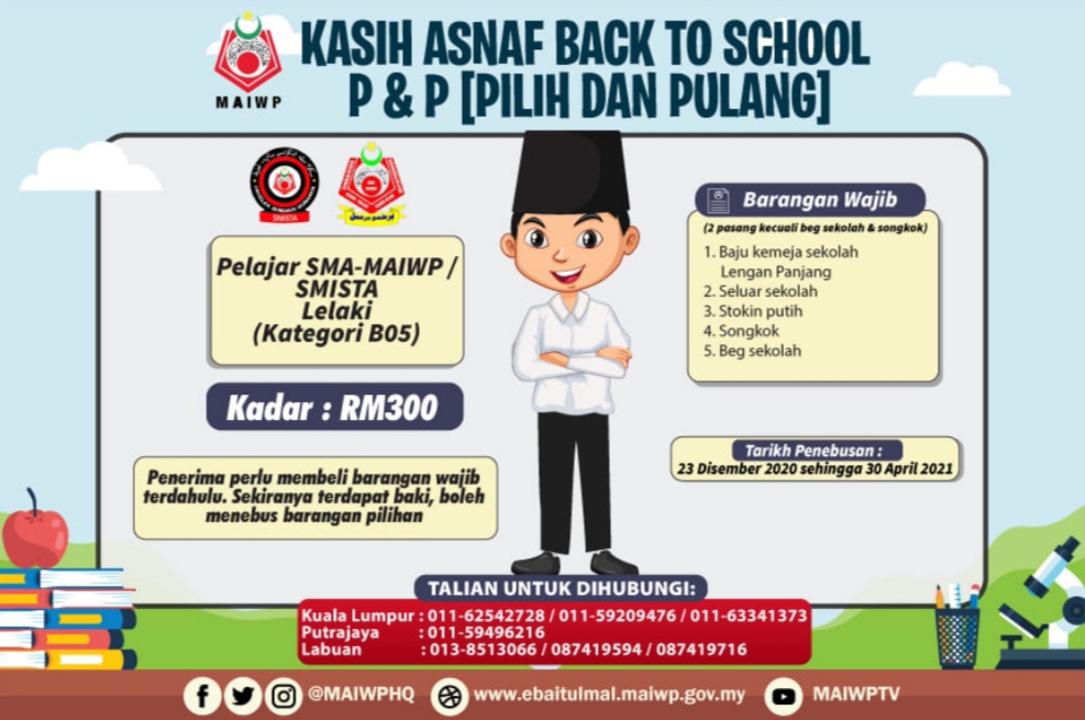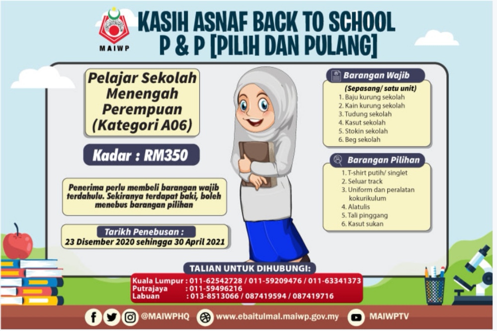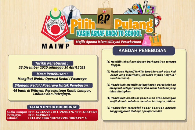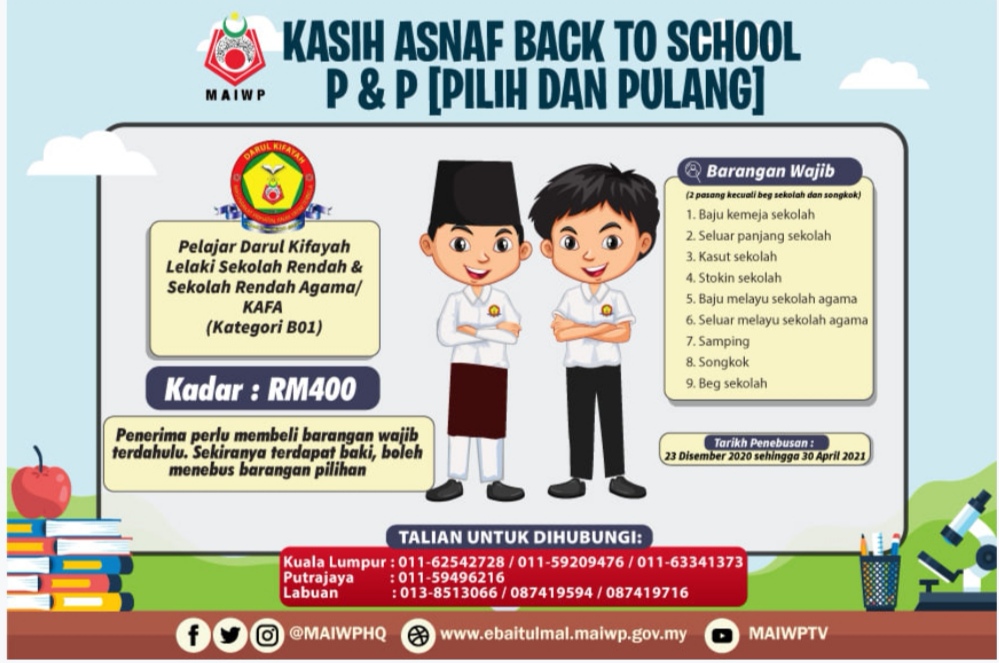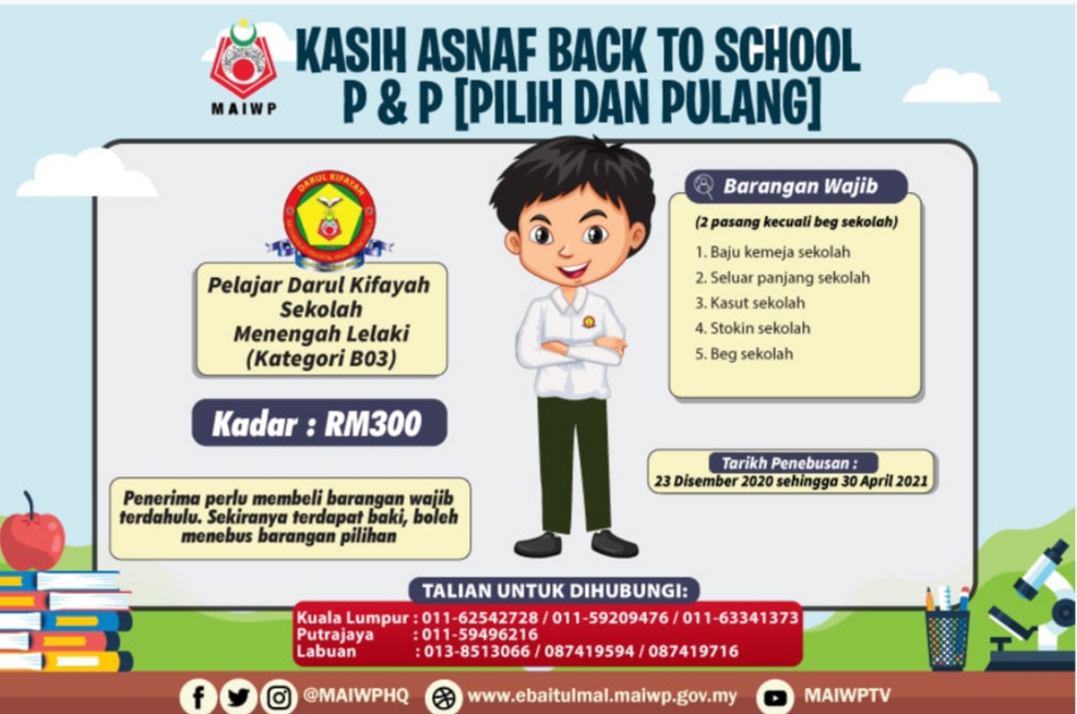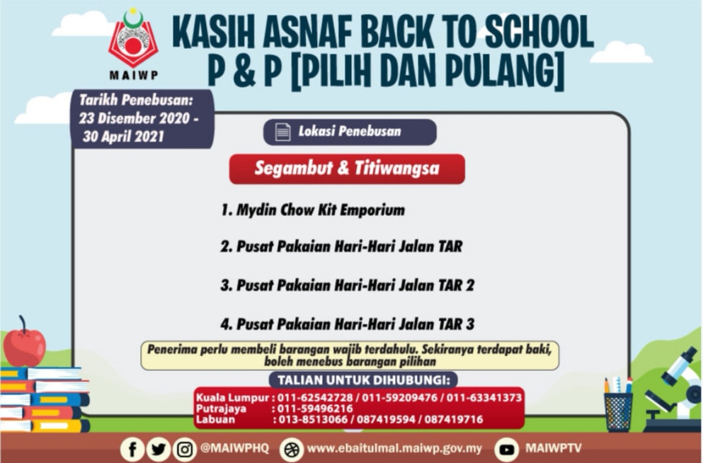 Majlis Agama Islam Wilayah Perseketuan atau MAIWP akan memberikan bantuan kepada keluarga asnaf untuk persiapan anak-anak menjelang sesi persekolahan.