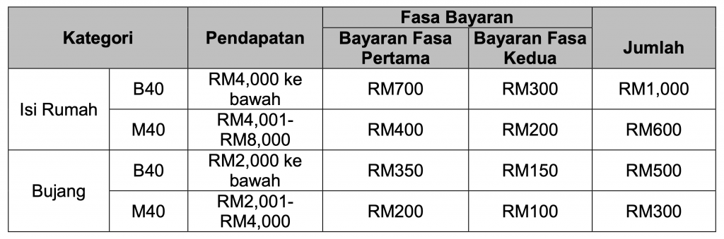 • Bujang B40 (RM 500) - Fasa 1 RM 350