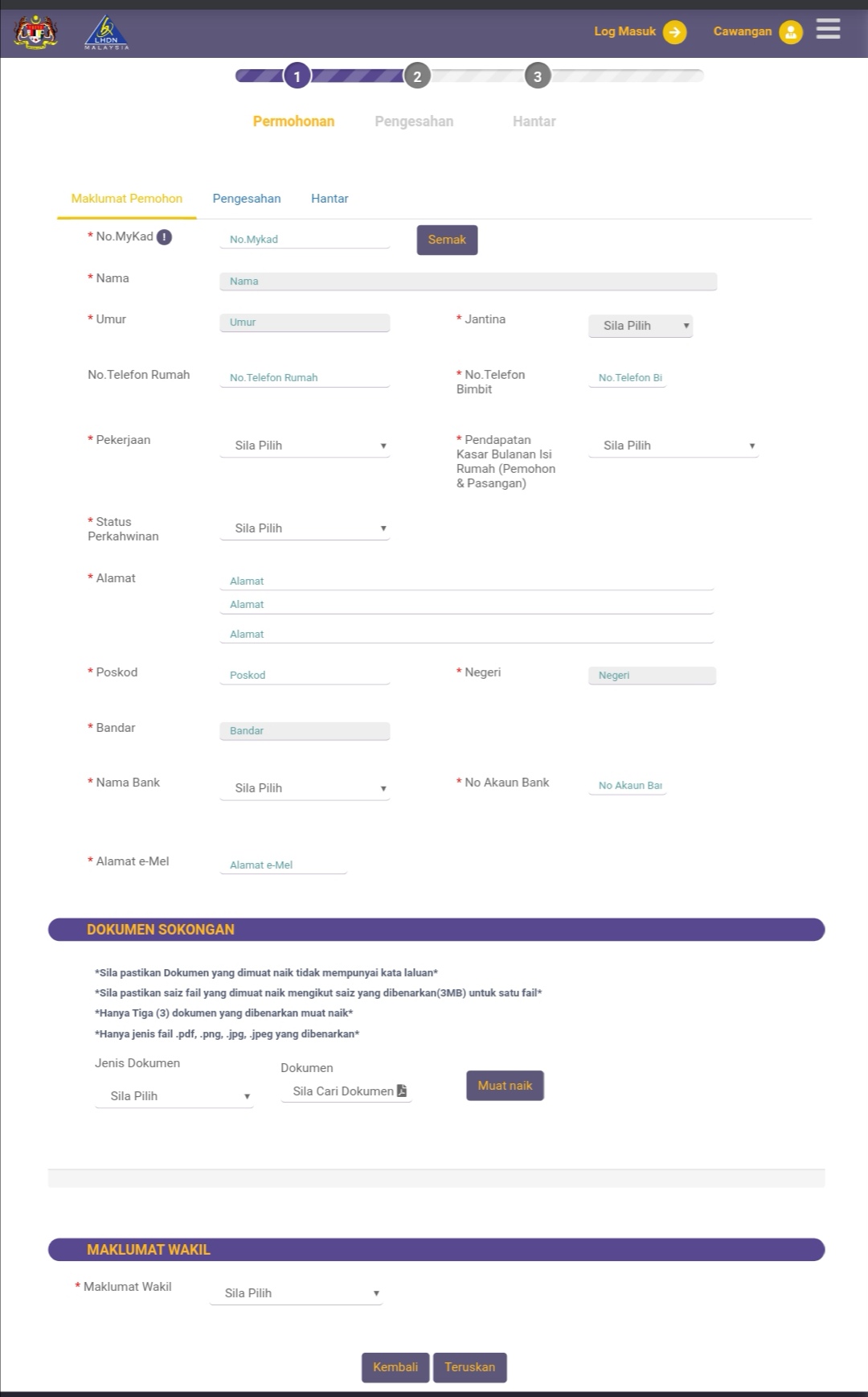 - Klik pada 'Permohonan Baharu'
