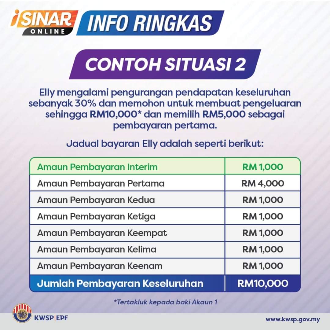 Sekiranya anda telah memohon pengeluaran RM 10,000 dan telah memilih RM 5,000 untuk pembayaran pertama.
