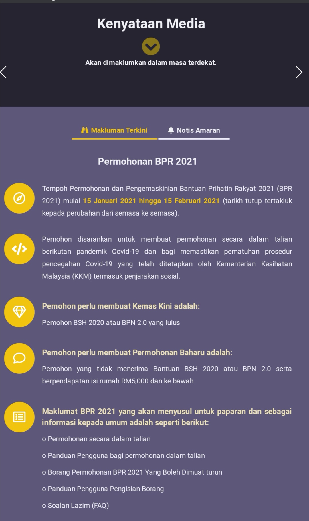 Tarikh Permohonan Baharu dan Kemaskini BPR 2021