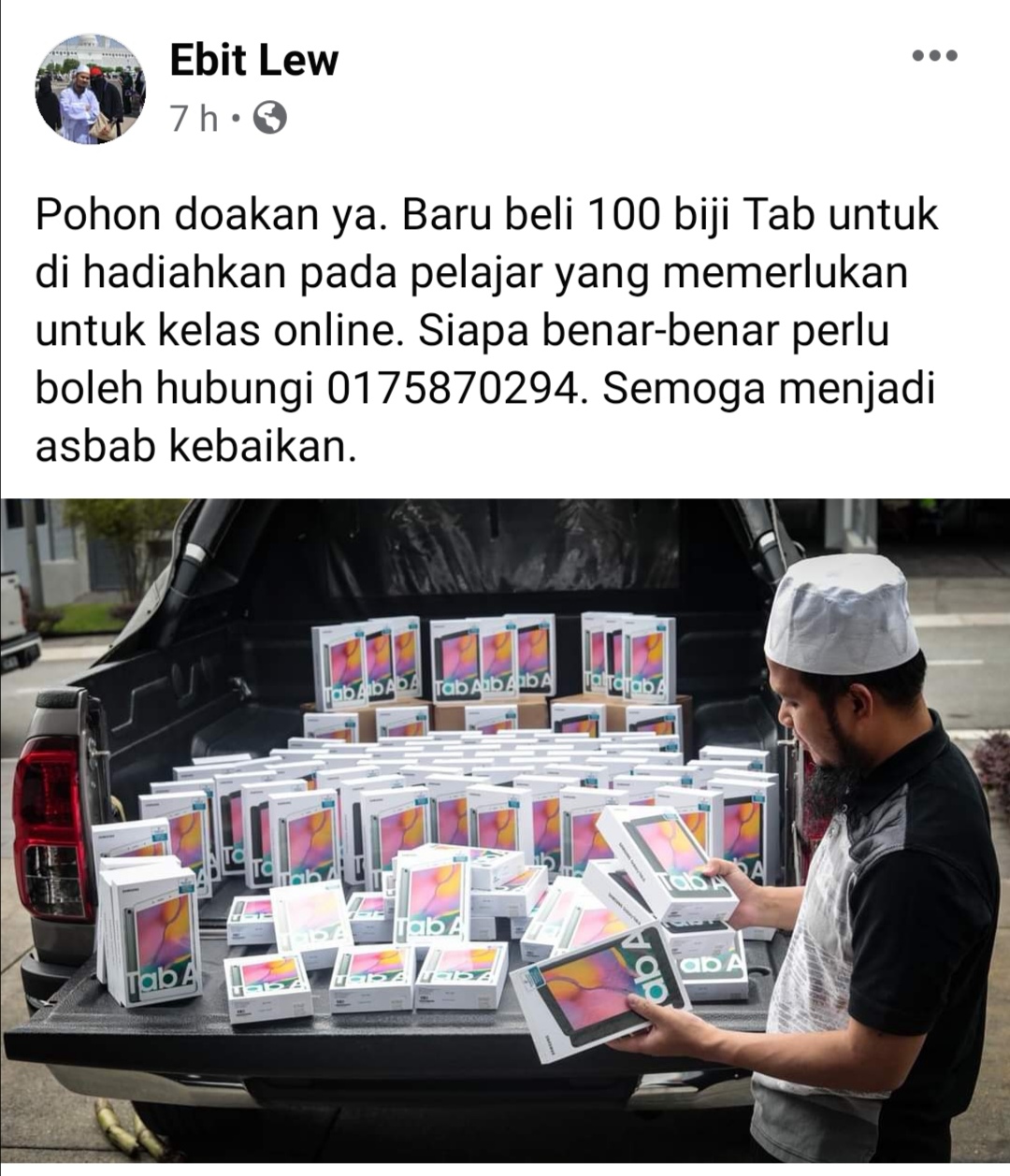 Dengan adanya bantuan ini, pasti terdapat segolongan pelajar yang boleh dibantu oleh Ustaz Ebit Lew.