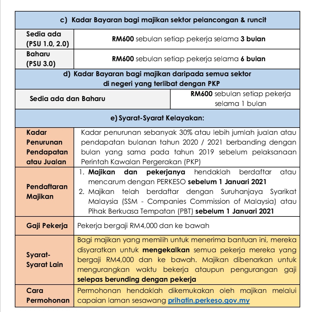 - Majikan atau perusahaan yang mendaftar SSM / ROS / ROB / PBT / atau lain-lain pertubuhan dan beroperasi pada atau selepas 1 Januari 2021.