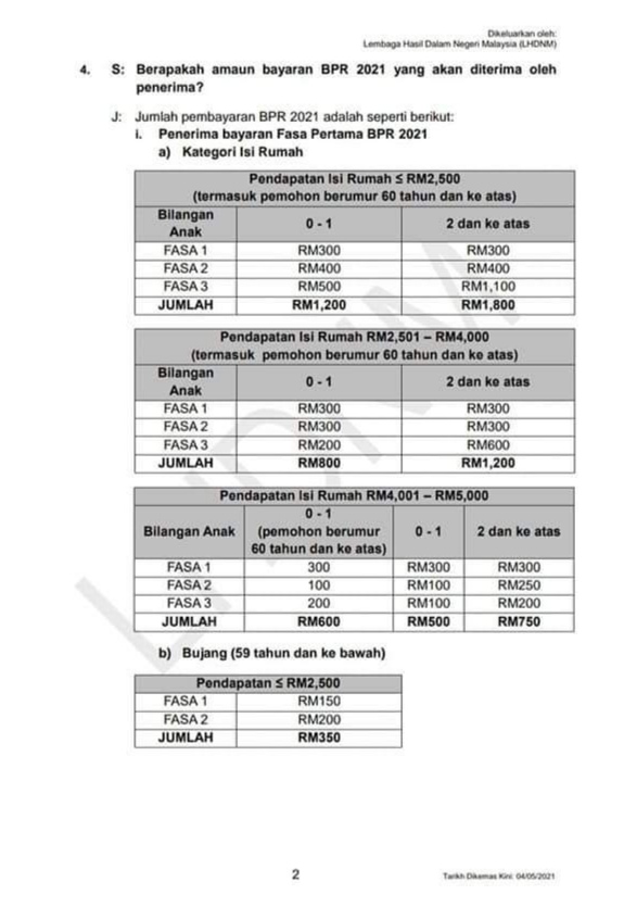 Sedia maklum bahawa pembayaran Bantuan Prihatin Rakyat (BPR) Fasa 2 akan mula dikreditkan pada 7 Mei sehingga 2021. Pembayaran terbahagi k...
