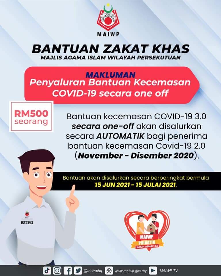 Kepada penerima Bantuan Kecemasan MAIWP 2.0 yang lalu, bayaran akan dilaksana secara berperingkat bermula