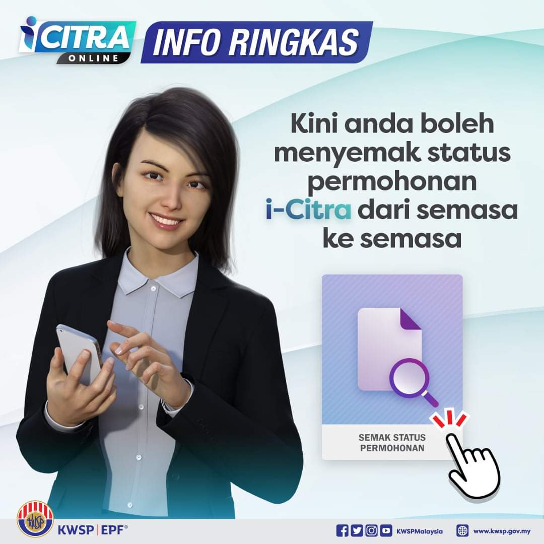 Daripada kenyataan yang dikeluarkan oleh KWSP, pemohon boleh menyemak status permohonan i-Citra dari semasa ke semasa melalui portal rasmi i-Citra.