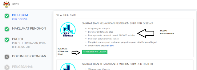 1. Pemohon perlu memilih sama ada SKIM PPR DISEWA/ SKIM PPR DIMILIKI/ SKIM MYHOME.