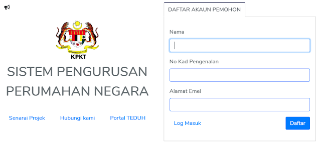 1.  Pemohon haruslah terlebih dahulu membuat akaun yang akan diberikan di bawah                   KLIK : DAFTAR AKAUN