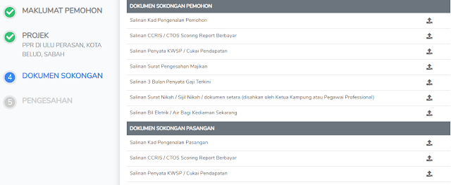 1. Senarai dokumen sokongan akan dipancarkan di skrin anda.