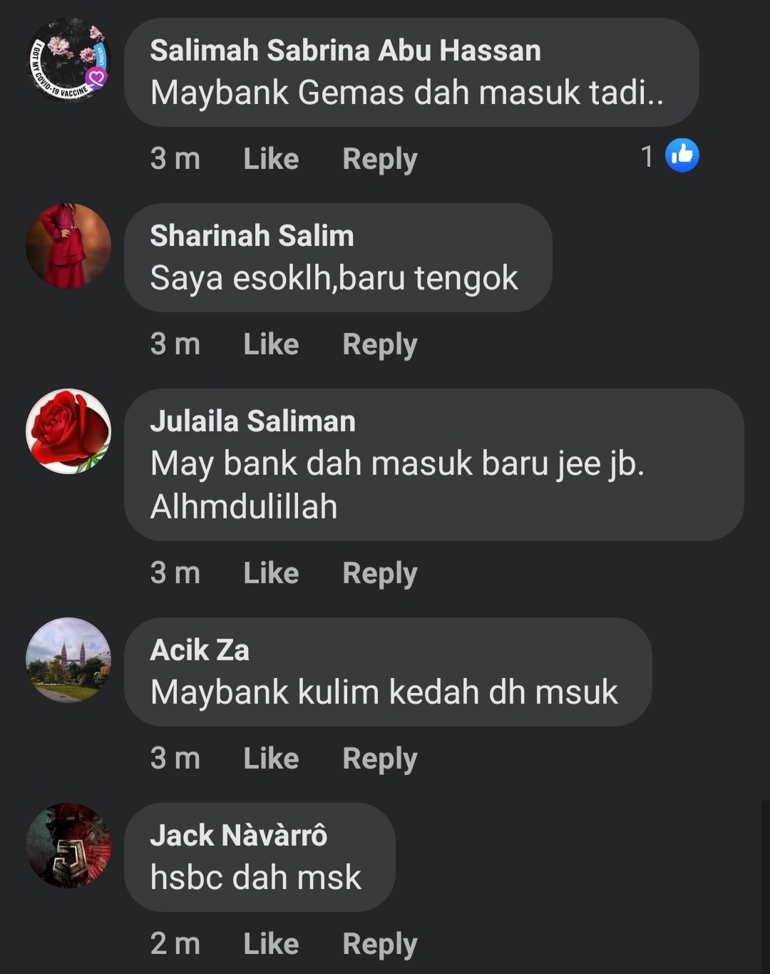 Comb bank kelantan Bela masuk ye,says gi cek ptg tdi masih take Ada masuk lgi no.Ada shbt Alan Maya ku yg Ada dpt dh yg mengunakan Ac Cimb bank yg dh masuk bgi rykyat kelate yg guns ac comb shj ye, tlong info sikit jika shbt ku dh masuk ye,T.kasih, jgn kecam ye,skdar bertanya sesama kita ye,pd mass kinilah utk kita tahu sesorg itu hatinya benar2 jujur&Iklas mberikan jawabpan2 yg jujur juga penuh brsopan santun taipan2 dari msg2nya membalas pertanyaan serperti ini ye,Was salaam unique I,,Aminn3xxxyaarobaanalaminn..Allah..huu.💪💪👌👍😘😘😊