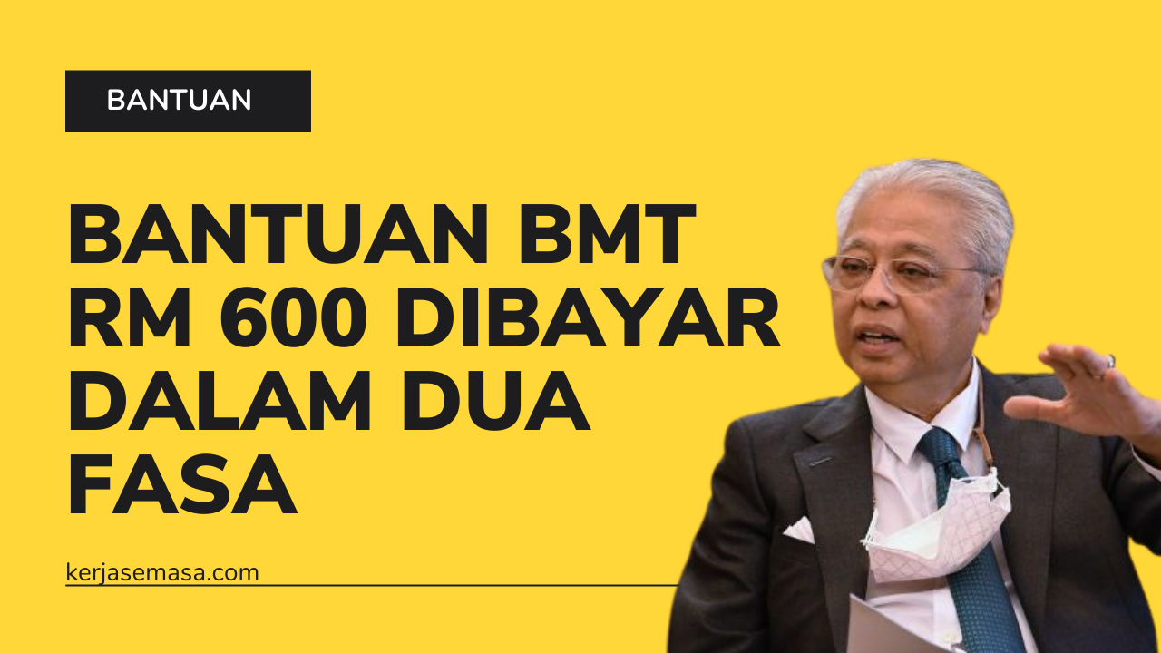 Bantuan BMT berjumlah RM 600 dua fasa beserta jumlah bantuan, tarikh permohonan, tempoh pelaksanaan, syarat kelayakan, kaedah bayaran, maklumat lanjut