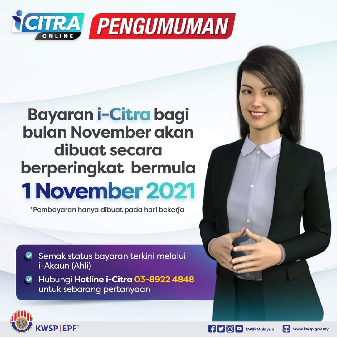 Mengikut pengumuman yang dikeluarkan oleh KWSP melalui Facebook rasmi mereka, bayaran i-Citra bulan Oktober akan bermula pada